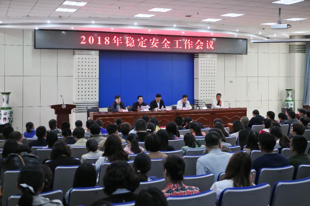 4月11日下午,学校在新校区木铎厅召开了2018年稳定安全工作会议,校党委书记白黎、校长司晓宏、副校长王富平、纪委书记段恒春等出席会议。会议由党委副书记栾宏主持。