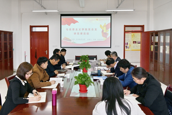4月16日下午,作为马克思主义学院第一党支部的一名普通党员,校党委书记白黎在博文楼1416会议室为马克思主义学院全体党员讲了一堂深刻生动、紧贴实际、富有重要指导意义的党课,党课由第一党支部书记王红梅主持。