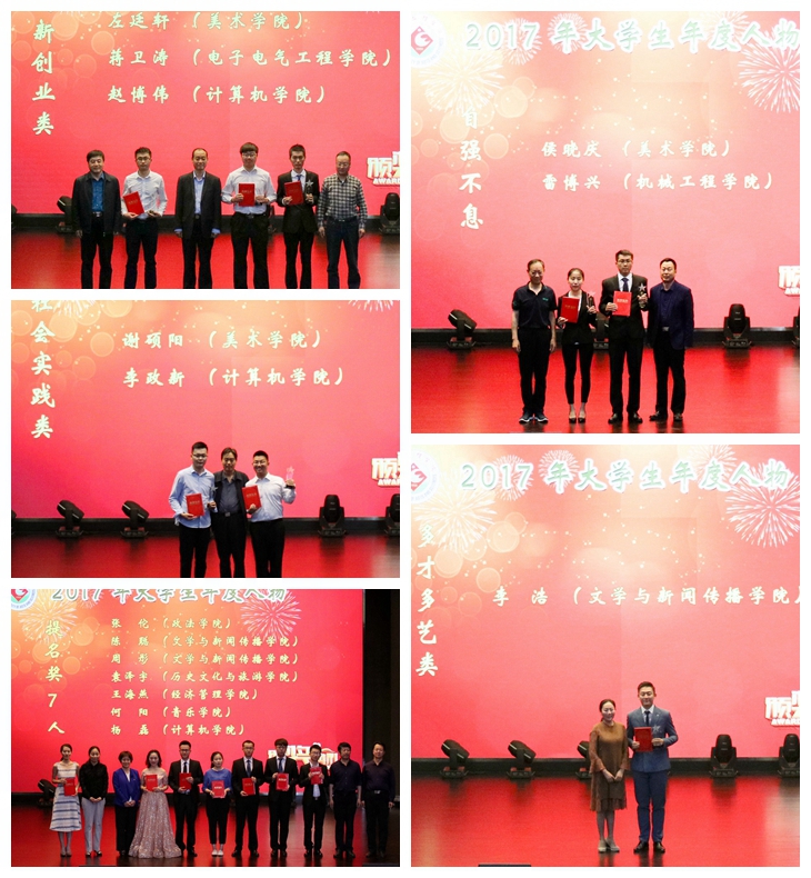 2017年大学生年度人物评选活动自2017年11月启动以来,在学生个人申报、二级学院推荐、学工部资格审查基础上,通过初评投票、现场答辩、微博微信网络投票、千人现场实名投票四个环节评审,经学校评审委员会研究,王雪等12人获我校“2017年大学生年度人物”荣誉称号,张佗等7人获“2017年大学生年度人物”提名奖,张乐乐等18人获“2017年大学生年度人物”入围奖,美术学院和计算机学院获优秀组织奖。本次活动共有23775人次访问微信平台投票,4370人次访问微博平台投票,有1000名学生组成“千人评审团”参与现场实名投票,学生参与面广,受关注度高。