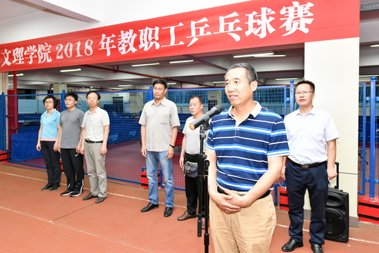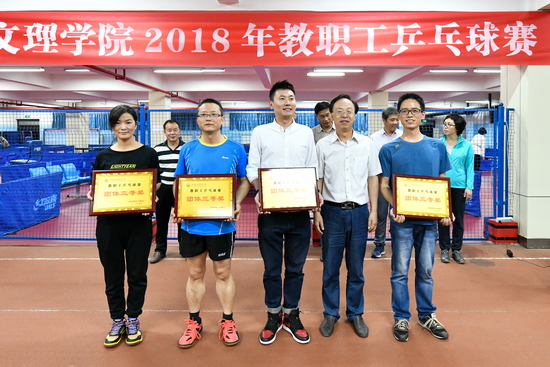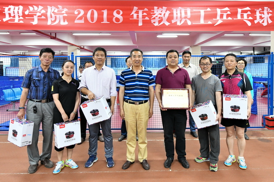 5月16日至18日,我校2018年教职工乒乓球赛在新校区体育馆举行。校党委副书记傅志军宣布比赛开始并为获得一等奖的团体和个人颁发奖牌、奖品。