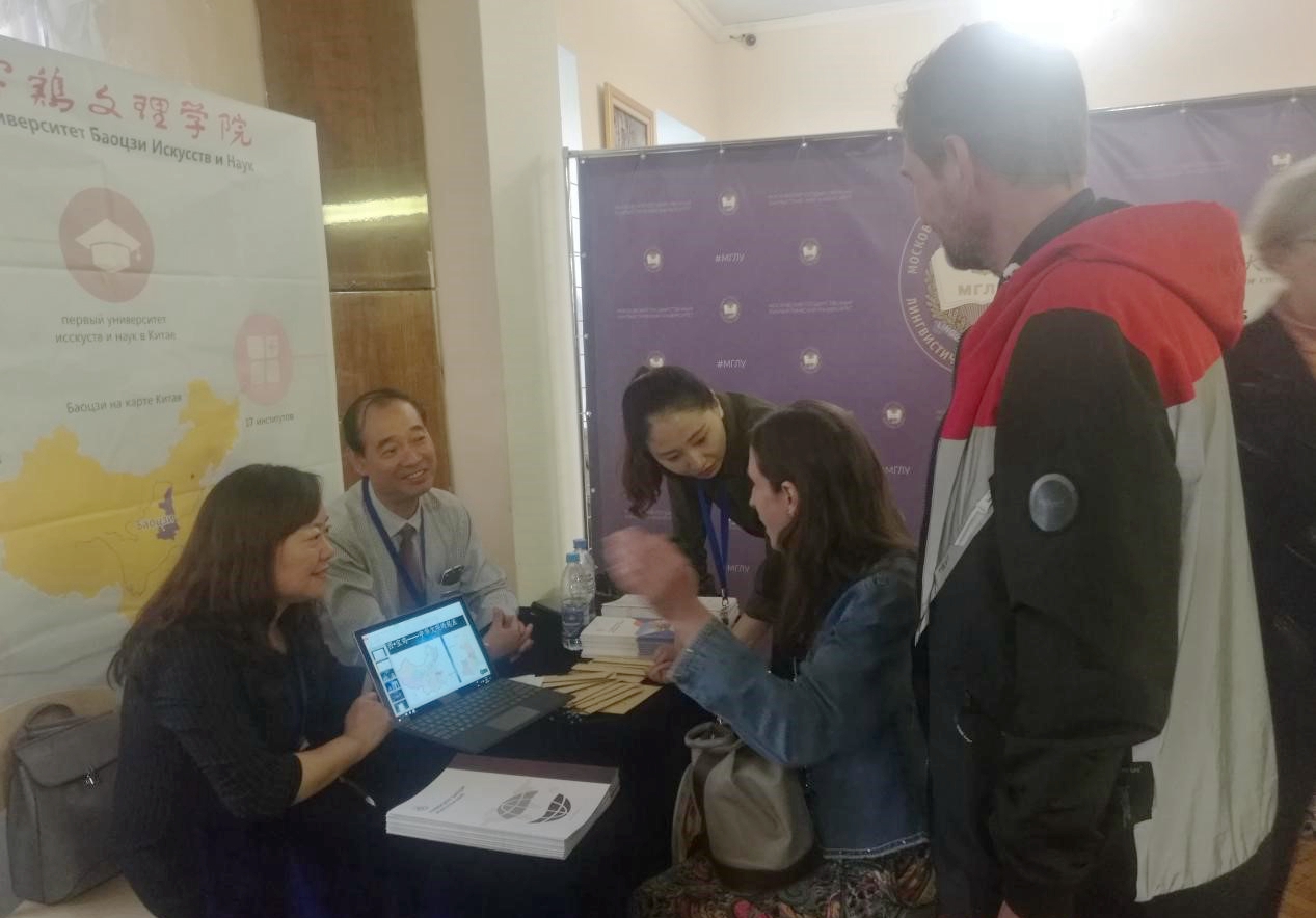 5月18日至19日,2018俄罗斯首届HSK(汉语语言水平等级考试)留学展览会在莫斯科国立语言大学举办。陕西省首次组织12所高校参展,我校招生就业处处长李周让、国际合作与交流处处长王永君代表学校赴俄参展。