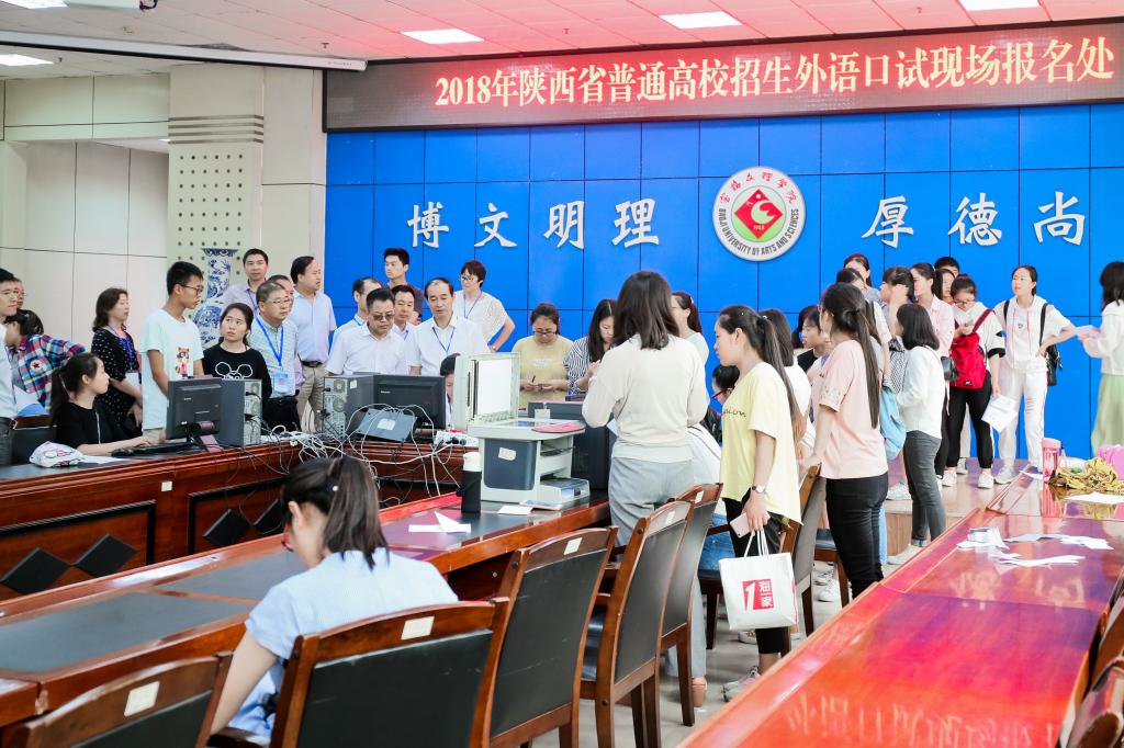 6月17日,2018年陕西省普通高校招生外语口语考试宝鸡考点的考试工作在我校举行,本次共有来自宝鸡12个县区的6804人参加考试,比2017年增加984人,报考人数创六年来新高。