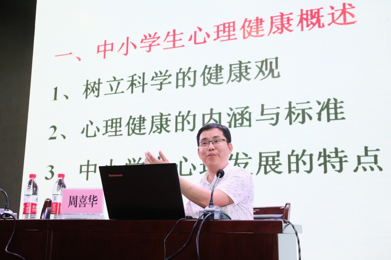 报告会上,周喜华分别从中小学生心理健康概述、关于中小学生心理问题、中小学生心理问题的应对方法等三个方面进行了讲解。重点围绕厌学、考试焦虑、青春期异性交往、自卑心理等中小学生常见心理问题进行了深入分析,阐述了中小学教师应对常见心理问题的方法和对策。