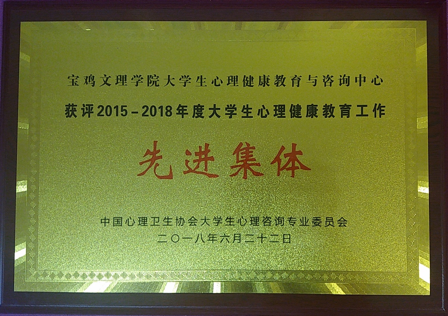 近十年来,我校大学生心理健康教育工作取得了多项成果,先后获得陕西省心理咨询先进单位、宝鸡市心理咨询先进单位,陕西省高校心理健康知识竞赛特等奖、优秀组织单位,心理情景剧大赛二等奖等多个奖项;我校心理健康教育与咨询中心专兼职教师也先后获得心理咨询案例评选一等奖、心理微课大赛二等奖、心理主题班会二等奖、心理微课大赛三等奖、陕西省优秀心理咨询师等荣誉。本次获此殊荣,是对我校近年来大学生心理健康教育工作的充分肯定。学校将以此为动力和契机,继续加大心理咨询中心建设力度,不断创新工作方式和载体,真抓实干、务出实效,推动工作再上新台阶。(学工部 文/郝鑫 图/冯雷涛)
