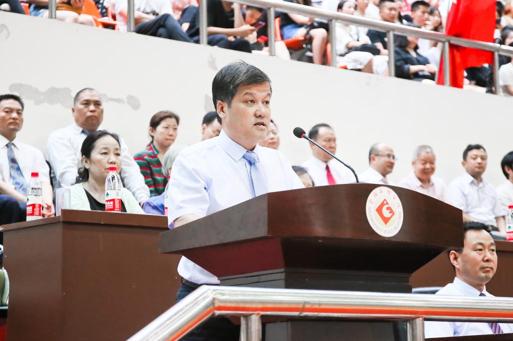 司晓宏指出,今天的毕业典礼不仅标志着学校对2018届毕业生综合素质和学业水平的认可,也意味着他们将真正作为一个成年人履职担当的开始。他就“责任”这个话题向2018届毕业生强调了三方面:他提醒同学们,面临这个责任意识有所淡化和缺失的时代,要能理解责任的涵义,并成为这个时代真正拥有历史责任感和担当感的一代公民。他告诉同学们,责任感的确立和担当意识的形成是一个人人格成熟的主要标志,当同学们跨出校门的时刻,也正是以一个完全成熟的公民承担责任、回馈社会的时刻,应该为国家、为社会、为父母、为家庭、为爱人以及为自己即将获得的社会称谓负责。他警醒同学们,你们正责无旁贷地肩负着实现中华民族伟大复兴的历史使命,只有具有强烈责任感、使命感和担当感的人才能真正成为社会主义现代化的建设者和接班人。最后,司晓宏向全体毕业生送上衷心祝福,希望同学们勇敢承担责任,谱写无悔青春,愿他们历尽千帆,归来仍是如初少年,老师们会永远关注他们远去的航船,母校永远是他们心灵的港湾。