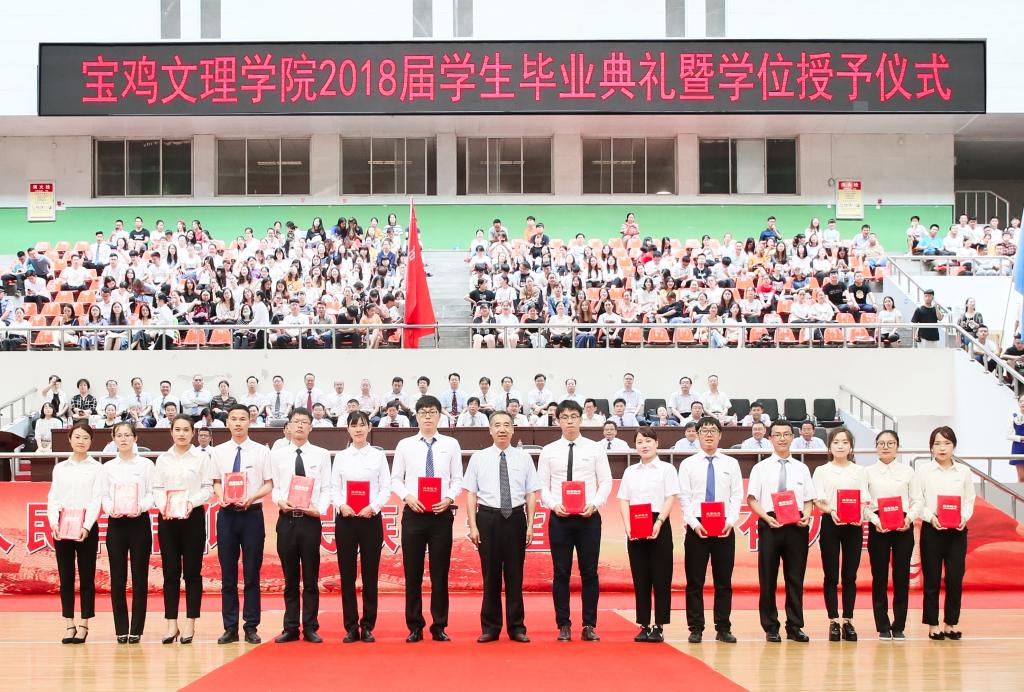 6月26日上午,我校在宝鸡市体育馆隆重举行2018届学生毕业典礼暨学位授予仪式。校党委书记白黎,校长司晓宏,党委副书记傅志军、栾宏,副校长杨子元、王富平,纪委书记段恒春等出席毕业典礼暨学位授予仪式。毕业典礼暨学位授予仪式由栾宏主持。