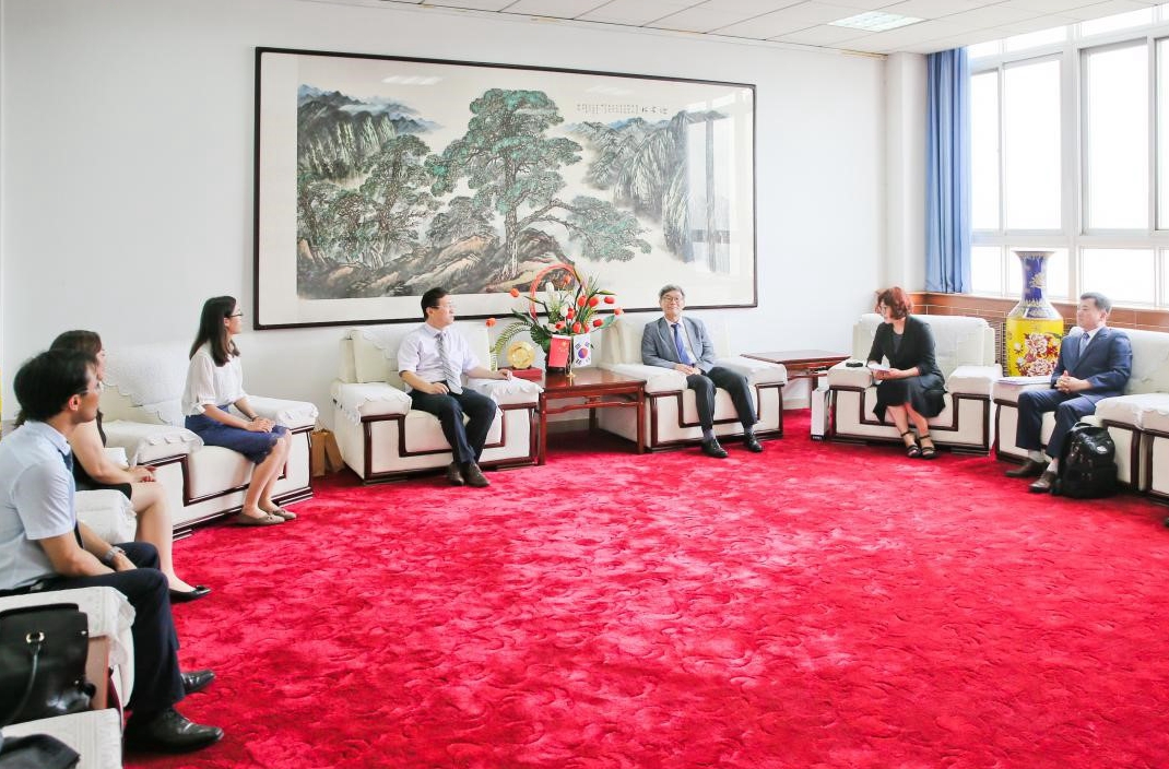 6月26日,韩国首尔明知大学副校长李垣根一行来我校访问,两校举行了教育交流合作座谈会并签署了学生交流项目合作协议。会前,校长司晓宏在图书馆八楼接待室会见了来访客人,他向李垣根介绍了我校基本情况,提出希望两校积极开展学生交流和教师交流访学等项目,加强校际交流与合作,并表示期待明年能够建立两校高层互访机制。
