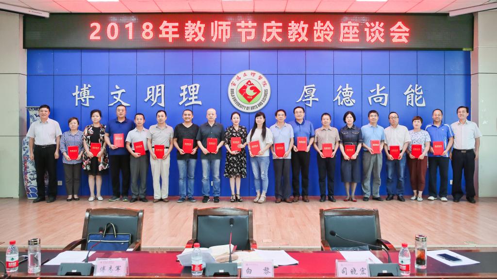9月7日下午,学校在新校区甘棠厅召开2018年教师节庆教龄座谈会。校党委书记白黎、校长司晓宏出席会议并向年满35年、30年、25年教龄的教职工颁发了荣誉证书。会议由校党委副书记傅志军主持。