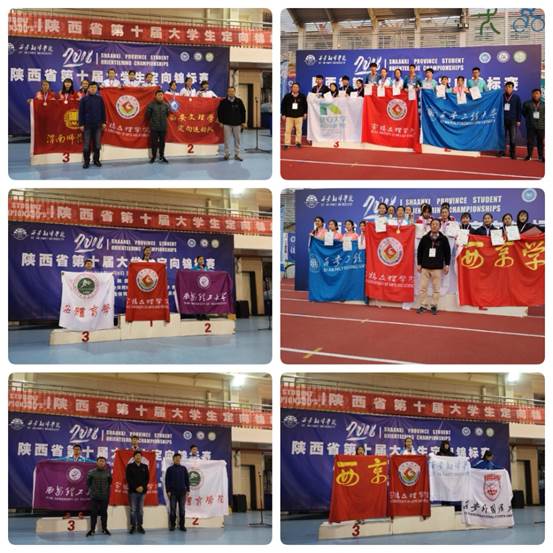 在11月8日-10日举行的陕西省第十届大学生定向锦标赛中,我校定向越野代表队荣获甲组总团体亚军、乙组总团体亚军、女子乙组团体冠军、男子乙组团体第二名、女子甲组团体第二名、男子甲组团体第三名,共获得金牌14枚、银牌12枚、铜牌9枚的优异成绩。同时,田理瑞、高凯书、付二迪、伍思萍被评为优秀运动员,罗光飞、翟晓英被评为优秀教练员。