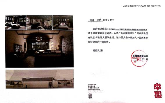 近日,“为中国而设计”第八届全国环境艺术设计大展暨学术论坛在广州美术学院落下帷幕。我校美术学院教师降波指导的2014级环境设计专业学生刘通和2015级环境设计专业学生毕然的设计作品《传统的再造——宝鸡市翟家坡民俗养老院设计方案》入选本次大展,并获入会资格作品。