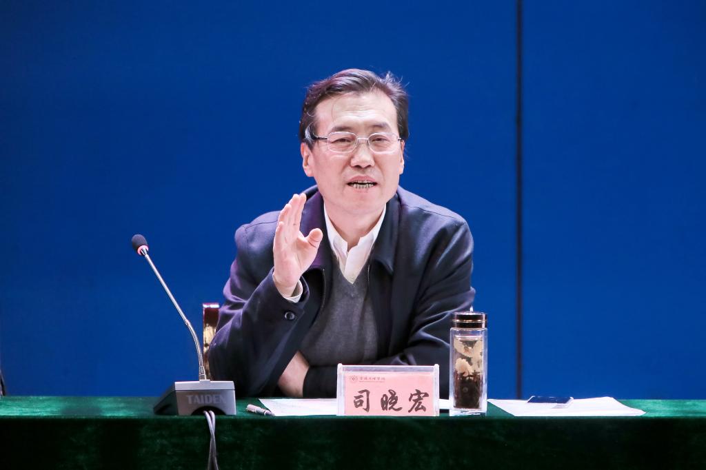 司晓宏在报告中从强化质量意识,教学工作的重心逐步转移到扩充内涵、提高质量上;调整和优化专业结构,专业建设水平大幅度提高;深化教学改革,教学质量得到有效提高;加强师资队伍建设,以高水平师资促进教学质量提高;严格教学管理,加强教风学风建设;加大教学投入,改善教学基本条件等方面回顾和总结了近年来,特别是审核评估以来教学工作取得的主要成果,分析了目前面临的形势任务及存在的问题。他从六个方面提出了深化教学改革提高教学质量的重点任务和举措,一要把加强教学内涵建设摆在首要位置,夯实教学中心地位;二要坚持引培并重,进一步做好高水平师资队伍建设工作;三要以质量为导向,切实加强专业内涵建设;四要深化课堂教学改革,推进一流课堂建设;五要集聚要素资源,推进创新创业教育工作;六要强化质量文化意识,健全教学质量保障体系。