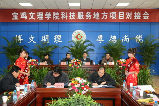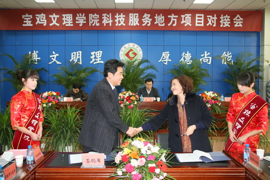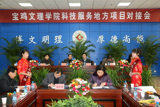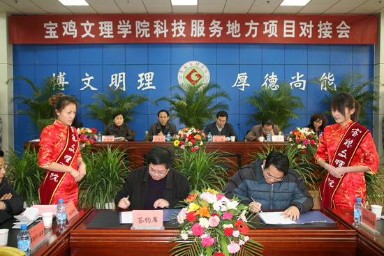 我院科技处与宝鸡市科技局签订了校地科技合作框架协议;两个省级重点实验室和机电工程系、电子电气系、计算机系分别与15个企事业单位签订了产学研合作协议。