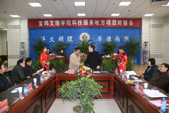 12月25日下午,学院在新校区甘棠厅召开“宝鸡文理学院科技服务地方项目对接会”。宝鸡市委常委、副市长孙毅、宝鸡市政协副主席王虎贤出席会议。院长王志刚和市委常委、副市长孙毅分别作了讲话。我院副院长赵荣侠主持会议。