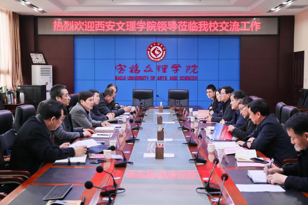 会上,王富平代表学校党政和全体师生对曹鸿一行来我校调研交流表示热烈欢迎!他从学校的发展历程、学科建设、教学评估、研究生教育、创建宝鸡大学等方面作了简要介绍。曹鸿表示,宝鸡文理学院是一所具有鲜明的办学特色及学科优势,在省属同类院校中发展快、有影响的高校,许多经验和做法都值得学习和推广。同时,他对西安文理学院的办学历史、教学与科研、校地合作、发展战略等方面工作作了简要介绍。