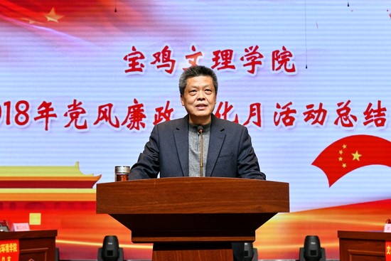 段恒春在总结讲话中指出,加强党风廉政文化建设是新时代落实全面从严治党新要求的基本内容,开展我校首届“党风廉政文化月”系列活动,旨在进一步加强党员领导干部政治思想修养,牢固树立廉洁自律意识,强化不想腐的自觉,从源头上预防腐败现象的发生,着力推进党员干部在思想观念上“更新换代”,能力素质上“升级换挡”,工作方式上“提质增效”,形成崇尚廉洁、健康向上的校园文化氛围。 他就今后进一步强化党风廉政文化建设提出了四点要求:一要进一步完善领导体制和工作机制,把廉政文化宣传教育工作纳入党风廉政建设责任制当中;二要加强廉政廉洁教育的针对性和实效性;三要坚持廉政文化建设与校园文化建设相结合;四要不断创新工作方式方法,进一步加强廉政文化建设再上台阶。