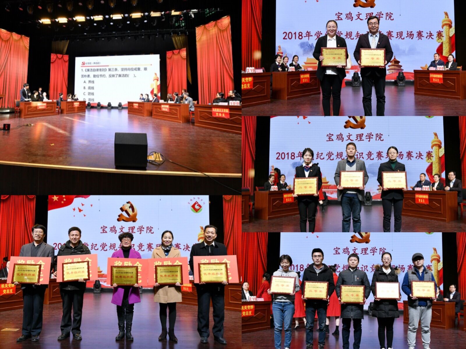 大会还进行了党纪党规知识现场决赛,从全校23个党总支中,经初赛产生出的5个代表队进行了激烈角逐。最终,机关党群党总支和文学与新闻传播学院党总支获得决赛一等奖,地理与环境学院党总支、教育学院党总支、马克思主义学院党总支获得二等奖,政法学院党总支、外国语学院党总支、经济管理学院党总支、音乐学院党总支、化学化工学院党总支获得三等奖。