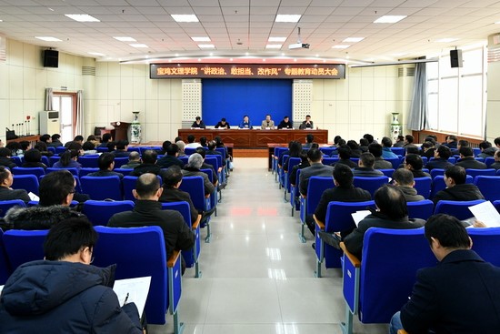 2018年12月25日下午,我校在新校区木铎厅召开“讲政治、敢担当、改作风”专题教育动员大会,学校党政领导及全体处级干部参加了会议。校党委书记、专题教育领导小组组长白黎作了动员讲话,校纪委书记、专题教育领导小组副组长段恒春主持大会。