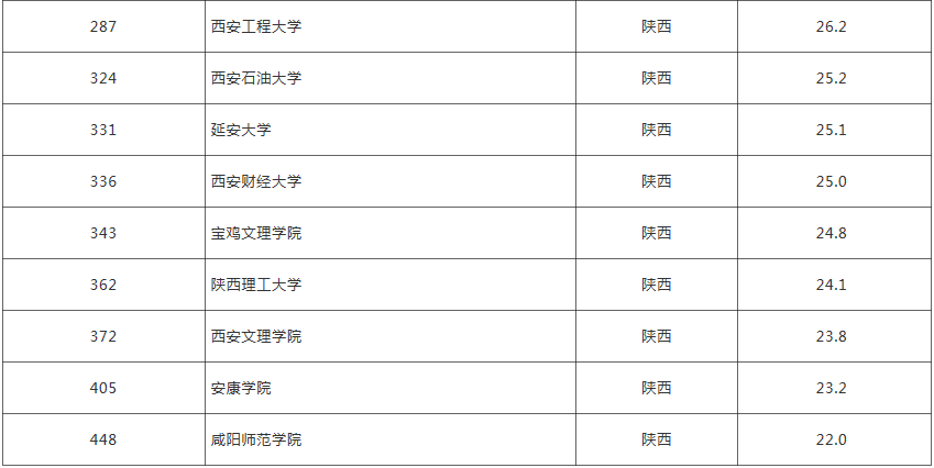 1月23日,世界大学学术排名(ARWU)最新发布2019“中国最好大学排名”,除我国台港澳地区之外综合实力最强的549所大学上榜,清华大学、北京大学、浙江大学位列前三。其中陕西共有27所高校上榜,西安交通大学排名全国第14陕西第1名,西北工业大学全国第30陕西第2名,我校全国排名343名,陕西第18名。