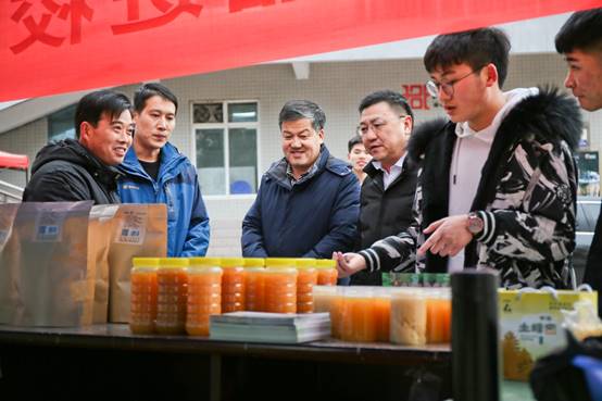 1月15日,副校长王富平来到高新校区销售活动现场,详细询问了土蜂蜜、木耳、花椒、香菇等太白县特色优质农产品的生产加工过程和销售情况,查看了大学生超市“双百工程”太白县优质农产品直销专柜。他指出,太白林业局必须严把进校园特色农产品质量安全关,遵循薄利多销原则,确实通过质量和价格赢得口碑、赢得市场,校扶贫办要认真总结此次销售活动经验,密切关注大学生超市“双百工程”太白县优质农产品直销专柜销售情况,为今后持续开展消费扶贫活动提供遵循。