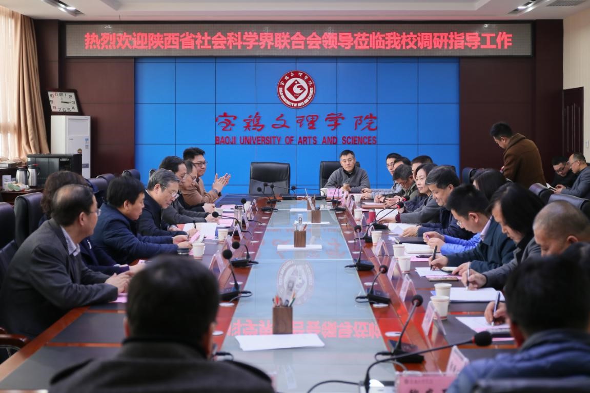 3月4日下午,陕西省社科界联合会主席甘晖、党组书记郭建树、宝鸡市社科联副主席霍海利、陕西省社科界联合会学会部副部长杜牧、科普部副部长刘瑛、办公室副主任张金高、《陕西社会科学》副主编杨曙明等一行7人来我校围绕高校社科联建设工作开展调研活动,校党委书记白黎陪同实地考察,副校长王富平主持调研座谈会,副校长李景宜参加座谈。