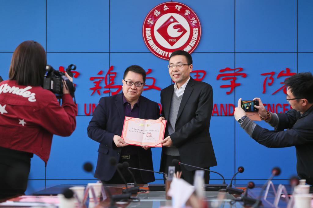 聘任仪式结束后,外国语学院院长王卫强和李巨怀教授在《书房沟》小说英译授权协议书上签字。李巨怀在致辞中说,感谢母校的培养,今后将不遗余力地支持学校各方面的工作,为学校创建高水平大学做出应有的贡献。