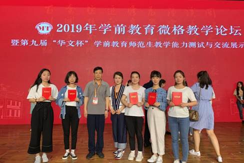 4月19日至22日,2019年学前教育微格教学论坛暨第九届“华文杯”学前教育师范生教学能力测试与交流展示活动在福建师范大学举行。我校由教育学院院长茹宗志和魏园园老师带队,经过前期选拔和精心准备选派学前教育专业五名优秀学生参加比赛并取得优异成绩,其中贺星星被认定教育活动方案设计一等奖、教学技能三等奖,王雪、弓悦被认定教育活动方案设计二等奖、教学技能二等奖,曹玲云、郭文聪被认定教学技能二等奖。此外,史文秀老师提交的论文荣获微格教学论坛论文评选一等奖。