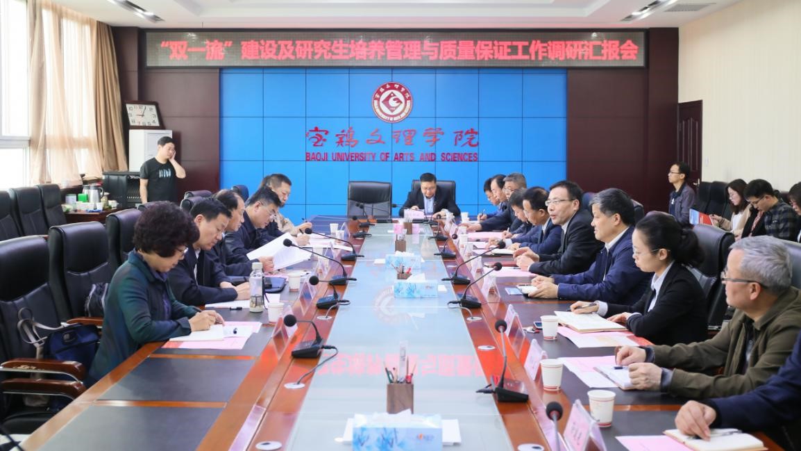 4月22日,以原西北工业大学副校长王润孝为组长的陕西省学位办专家组一行6人来我校调研“双一流”建设及研究生培养管理与质量保证工作。调研汇报会在图书馆801会议室召开,校长郭霄鹏出席,副校长王富平主持汇报会。