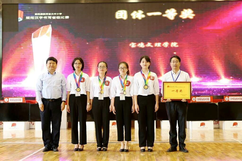 5月10日,“中国梦·爱国情·成才志”第四届陕西省大中小学规范汉字书写比赛在西安市第六十六中学举行,我校代表队力挫群雄,获得本届大赛“大学组”冠军。