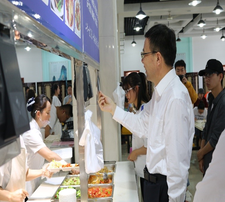 5月23日中午,“我与书记校长面对面”活动如约而至,校长郭霄鹏来到高新校区学生餐厅,与7名学生代表共进午餐,亲切交流互动,了解他们的学习、生活情况,听取他们对学校工作的意见和建议,午餐会成为师生敞开心扉的一次“家常谈心”。