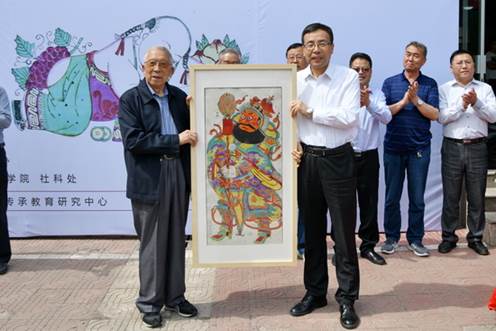 5月23日下午,李均先生捐赠凤翔木版年画展开幕式及捐赠仪式在我校高新校区艺术楼前广场举行,85岁高龄的李均先生将他收藏了30多年的凤翔木版年画170幅全部捐赠给我校“陕西非物质文化遗产传承教育研究中心”,用于支持中心开展的教学与研究工作。校长郭霄鹏、校党委副书记栾宏、副校长杨子元,李均先生以及宝鸡市老科协、市民俗博物馆、美协领导,学校相关职能部门领导与美术学院师生二百余人参加了开幕式及捐赠仪式。