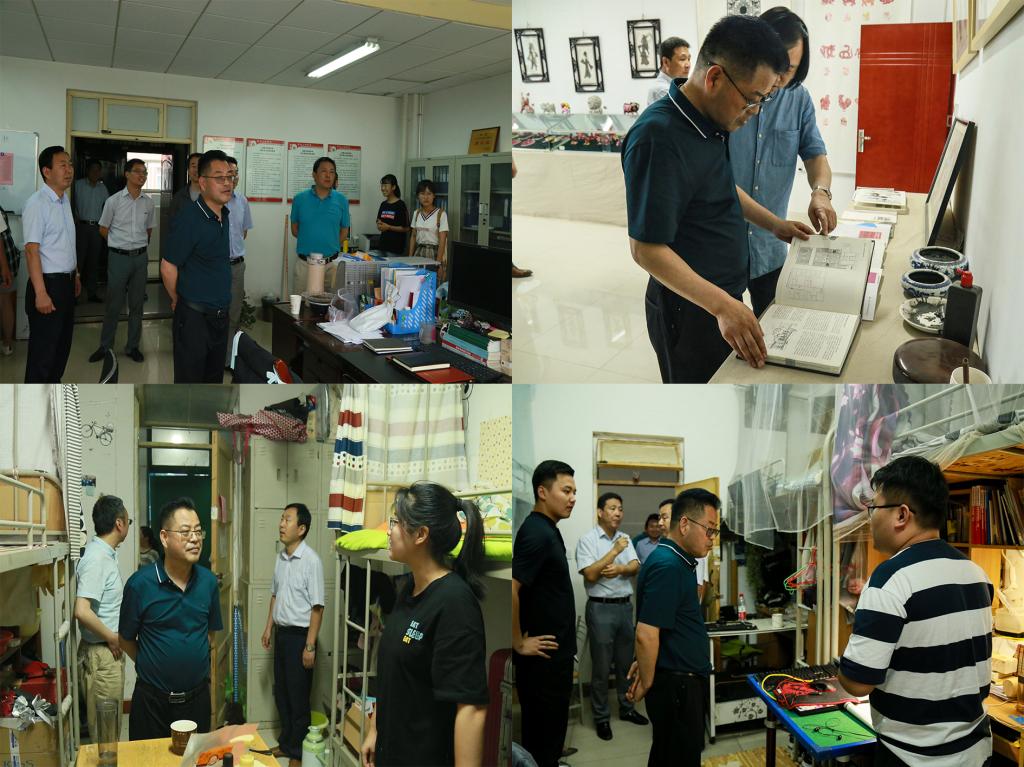 在走访检查电子电气工程学院、文学与新闻传播学院、美术学院时,栾宏详细查看了关陇民间美术研究所消防设施配置及运行情况,看望了一线工作的辅导员,详细询问了各学院辅导员人员配置和近期工作情况。