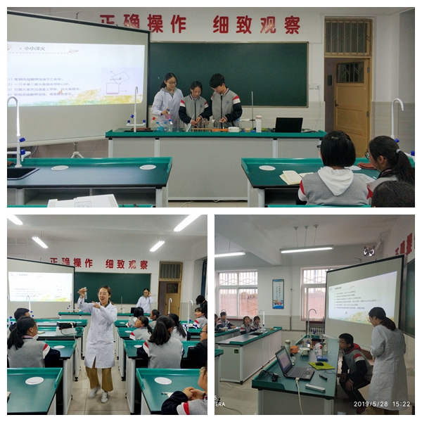在太白中学高一年级化学实验室,马琳带着3名学生开展了“科学乐园”实验展示活动。她们结合高一年级化学课程内容,提前筹划、精心准备,与中学生们现场操作,在课堂上先后展示了神奇光路、解密牙膏、小小洋火3个与日常生活用品紧密相关的《生活中的化学》实验,并分享了精油的前世今生和舌尖上的涩与滑2个小科普报告。参与现场实验展示的高一学生认真听讲、仔细观察、积极参与,课堂氛围热烈。通过亲自动手,学生们认识了一些基本的化学现象,被神奇的化学现象深深吸引,极大地激发了学生们学习科学、热爱科学的热情。