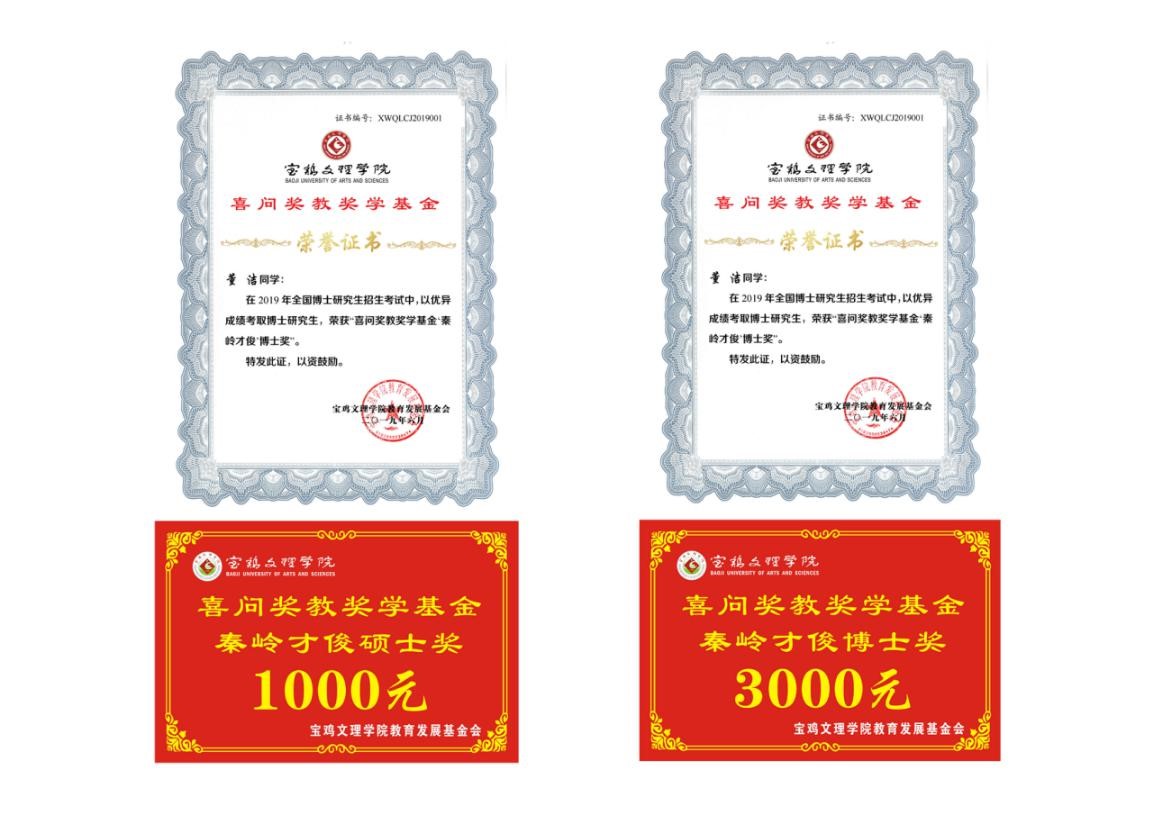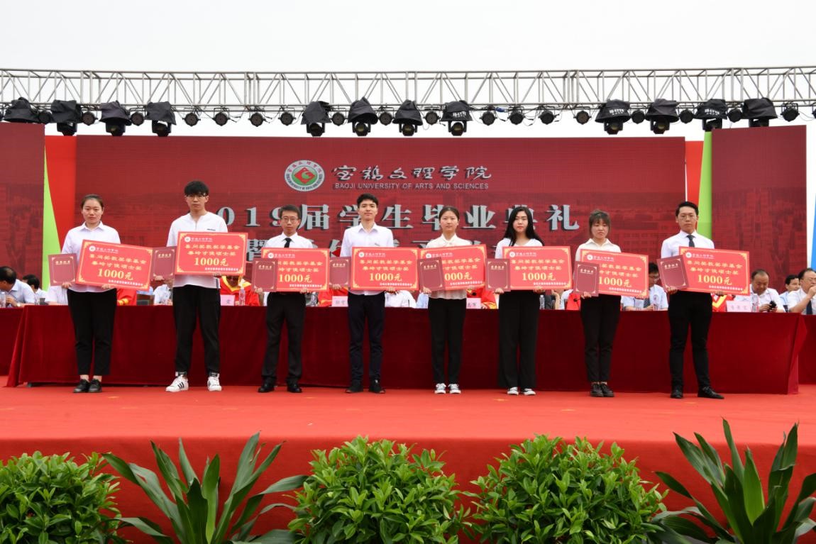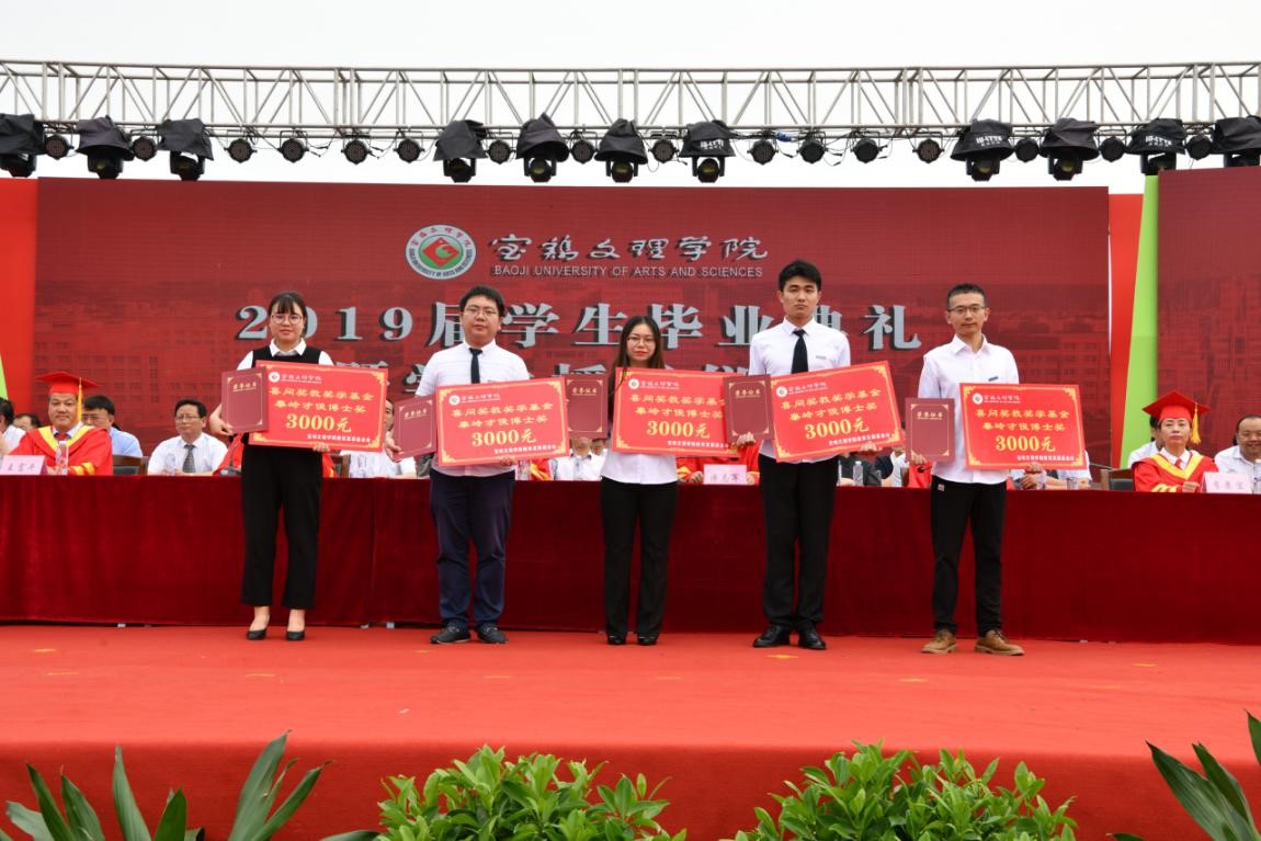 6月26日上午,在我校2019届学生毕业典礼暨学位授予仪式上,学校党政领导为荣获“喜问奖教奖学基金‘秦岭才俊’博士奖、 硕士奖”代表颁发荣誉证书、奖金。经各学院上报,学研处、学生处审定,教育发展基金会、捐赠人审核,董洁等5名考取博士的2019届硕士毕业生荣获“喜问奖教奖学基金‘秦岭才俊’博士奖”,每人发放奖金3000元;贺婷等448名考取硕士的2019届本科毕业生荣获“喜问奖教奖学基金‘秦岭才俊’硕士奖”,每人发放奖金1000元。