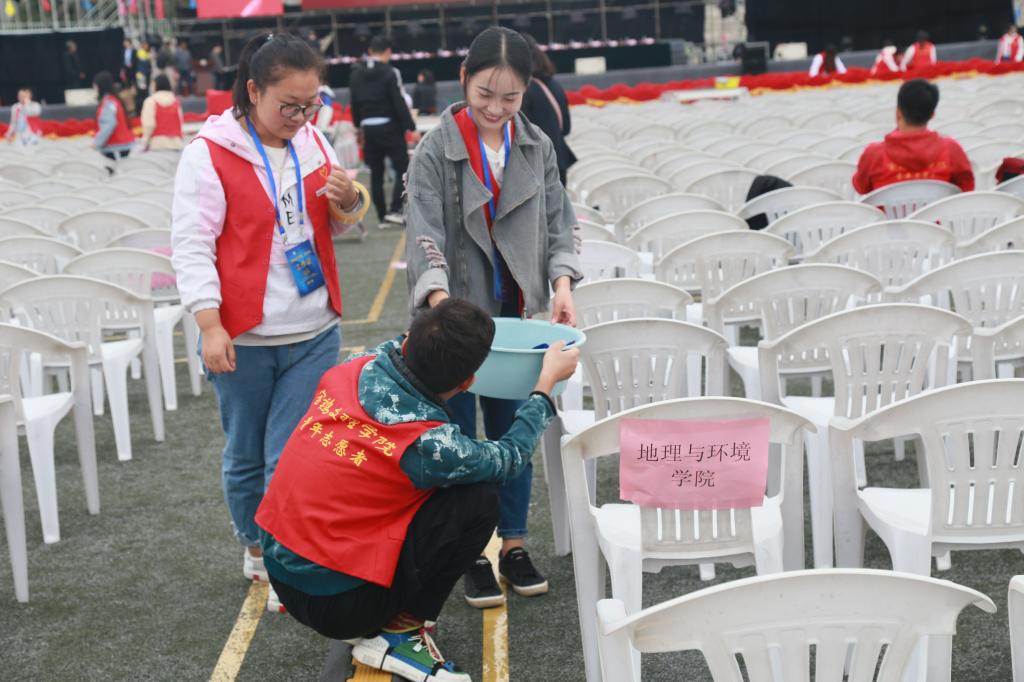 图4:“校园文明宣传大使”在毕业典礼上志愿服务
