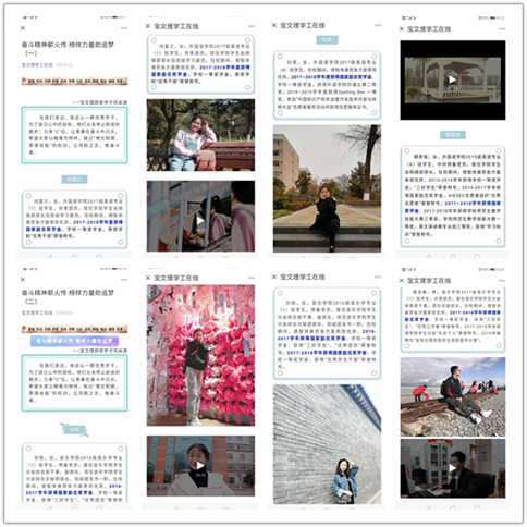 一是加强励志典型宣传平台建设。通过开展“奋斗精神薪火传•榜样力量助追梦”主题宣传活动,集中展示优秀学子典型事迹,充分发挥“二级学院——年级——班级”三个层级的作用,精心部署,多方联动,持续深入开展励志典型宣讲活动;利用新媒体扩大主题宣传活动覆盖面,如开展“奋斗精神薪火传•榜样力量助追梦”微视频征集大赛、“与学霸见面后”“努力拿国奖的日常”“我与行动共赴未来”等微话题讨论,宣传育人成果,营造育人氛围,帮助广大受助学生在成长中找到自我绽放的舞台。