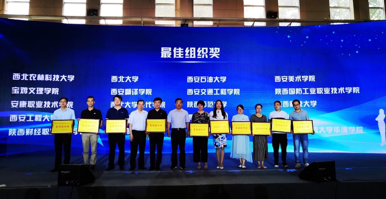 近日,陕西省“双百工程”大学生“我为脱贫出创意”设计大赛颁奖仪式在西安举行,省委教育工委、省教育厅、省扶贫办等相关领导出席表彰活动并为获奖单位和个人颁奖,我校5名学生在公益广告赛道、特色产品包装及文创赛道分获二等奖和优秀奖,我校荣获“最佳组织奖”。