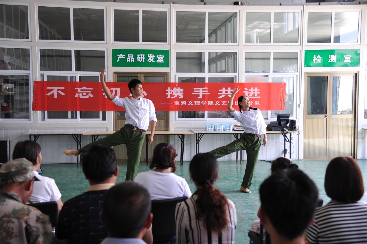 下午,文艺演出二分队20余名师生走进我校“现代绿色农业产学研一体化示范基地”—秦西现代农业示范园,为近百名园区职工和游客表演了舞蹈《花儿为什么这样红》《芳华》、秦腔《十五贯》、歌曲《咱老百姓》《我爱你中国》《我和我的祖国》等多个节目,精彩的节目赢得了现场观众的阵阵掌声和喝彩。