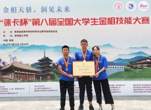 日前,由教育部高等学校材料类教学专业指导委员会主办的“徕卡杯”第八届全国大学生金相技能大赛在江苏省常熟市举行。经过校赛、省赛选拔,由我校机械工程学院3名本科生组成的代表队在丛慧、刘晶老师的指导下,经过激烈角逐最终取得优异成绩,其中,材料成型及控制工程专业2016级学生刘欢获全国一等奖,材料成型及控制工程专业2017级学生赵志明、曹喜军获全国二等奖,丛慧、刘晶获优秀指导教师奖,我校获团体三等奖。