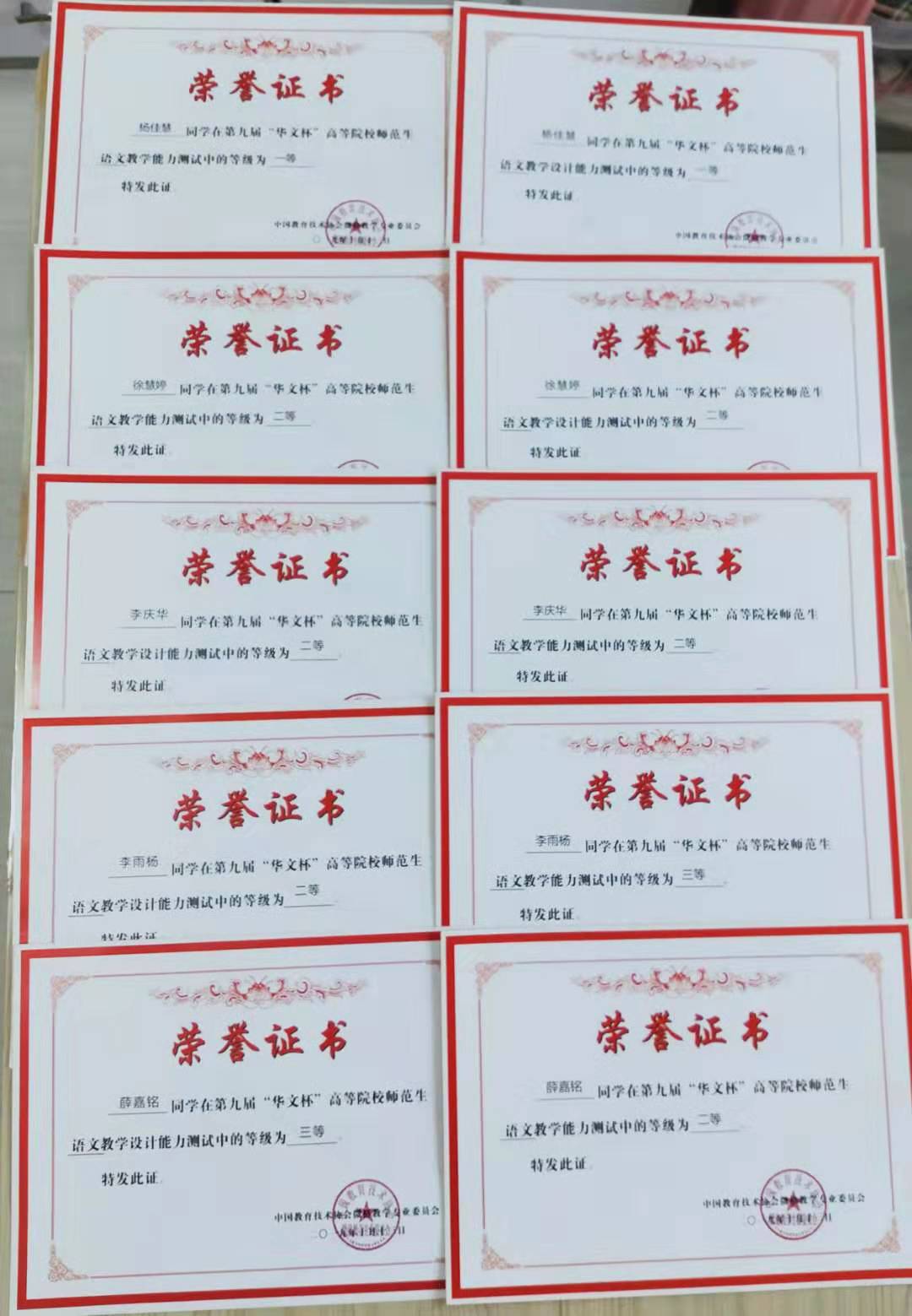 10月11日至14日,中国教育技术协会2019年微格教学论坛暨第九届“华文杯”师范院校师范生(语文)教学技能交流演示活动在山东潍坊学院举行。在文学与新闻传播学院郭勋亚副教授和郑新丽老师的带领下,我校汉语言文学专业的杨佳慧、李庆华、徐慧婷、薛嘉铭和李雨杨五名学生参加了比赛并取得优异成绩,在教学设计与教学技能展示两项比赛中共荣获一等奖2项,二等奖6项,三等奖2项。会议期间,郭勋亚应邀担任了教学技能大赛的评委,郑新丽提交的论文《统编初中语文教材课后练习的设计与使用研究》荣获微格教学论坛论文评比二等奖。