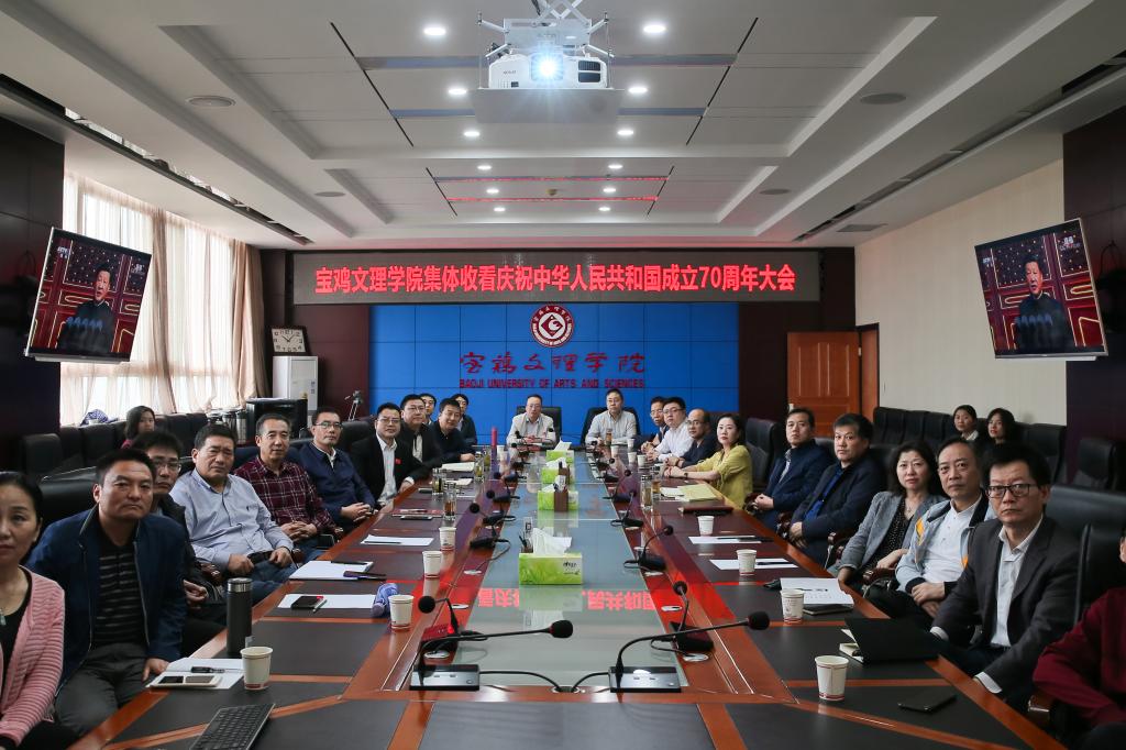 校领导、党委委员、党务部门负责人、各二级单位党委(党总支)书记在高新校区图书馆801会议室集体收看了庆祝中华人民共和国成立70周年大会直播。学工部、团委和各二级学院组织辅导员、学生干部、留校学生分别在甘棠厅、各学院教室、会议室收看了大会直播。