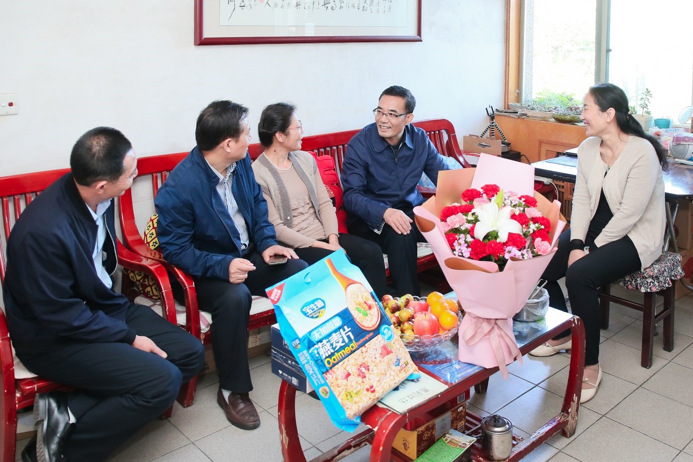每到一处,赵健和杨子元与老同志们嘘寒问暖、亲切交谈,详细询问了他们的身体健康状况、家庭生活、子女工作和就医看病情况,向他们介绍了学校“不忘初心、牢记使命”主题教育开展和更名大学最新进展情况,仔细听取了他们对学校发展的意见和建议。赵健对离退休老同志为学校发展所作出的不懈努力和重要贡献表示崇高敬意和高度赞赏,他表示,学校今天取得的成绩与老同志们的关心支持密不可分,没有老领导、老同志们过去工作的基础,就没有今天学校的发展,诚恳希望老同志们在当前学校更名大学的关键时期继续发挥余热、建言献策,贡献老一代“文理人”的智慧和力量,并祝愿他们始终保持阳光心态,保重身体,快乐生活。他要求离退处的同志要结合当前正在开展的“不忘初心、牢记使命”主题教育,切实认清所从事的岗位虽然平凡,但责任重大,要牢固树立服务意识,一定要像照顾自己的家人一样,始终如一地关心照顾好离退休老同志的工作和生活,及时解决生活中遇到的各种困难,不断提升服务保障水平,确保老同志们度过一个健康快乐的幸福晚年。