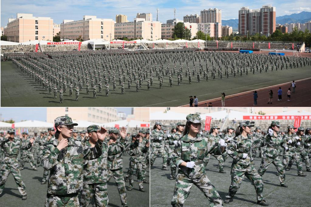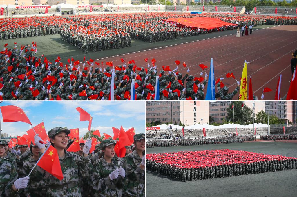 伴随着激昂的《分列式进行曲》旋律,2019级4700多名学生列成多个方队,依次通过主席台,接受学校领导和部队首长的检阅。同学们队列整齐划一,步伐铿锵有力,嘹亮的口号激荡在会场上空。随后,由1000名男生带来的拳术表演刚劲有力,一招一式尽显斗志昂扬;1000人的女子军体拳表演展示了拳打、脚踢、摔打、夺刀等系列内容,一拳一脚展现出巾帼不让须眉的风采。参加汇报表演的每一位学生都以激昂的斗志,挥洒着青春的誓言,精彩的表演迎来全场师生的阵阵掌声和喝彩声。