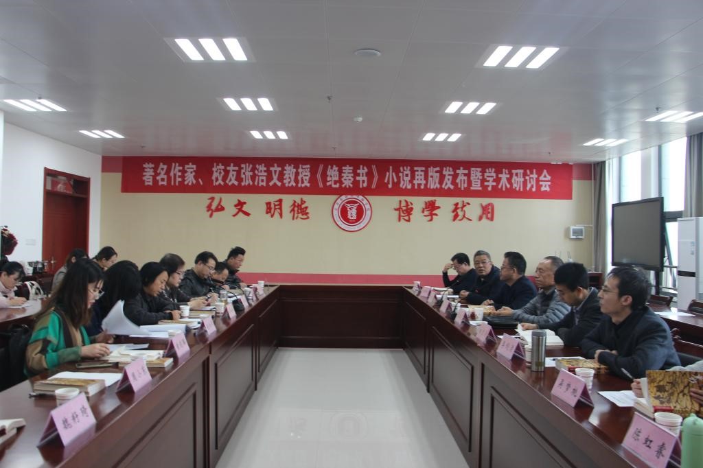 11月18日下午,文学与新闻传播学院、校陕西文学研究所联袂在高新校区博文楼1401会议室举办著名作家、校友张浩文教授《绝秦书》再版发布暨学术研讨会。校党委副书记、校友总会常务副会长栾宏出席会议。党委宣传部负责人和文传院党政领导、中国现当代文学学科教师、陕西文学研究所研究员、部分在读研究生以及地理与环境学院、学报编辑部、宝鸡市文化传媒艺术界代表等50余人参加了会议。会议由文学与新闻传播学院副院长、校陕西文学研究所所长孙新峰主持。