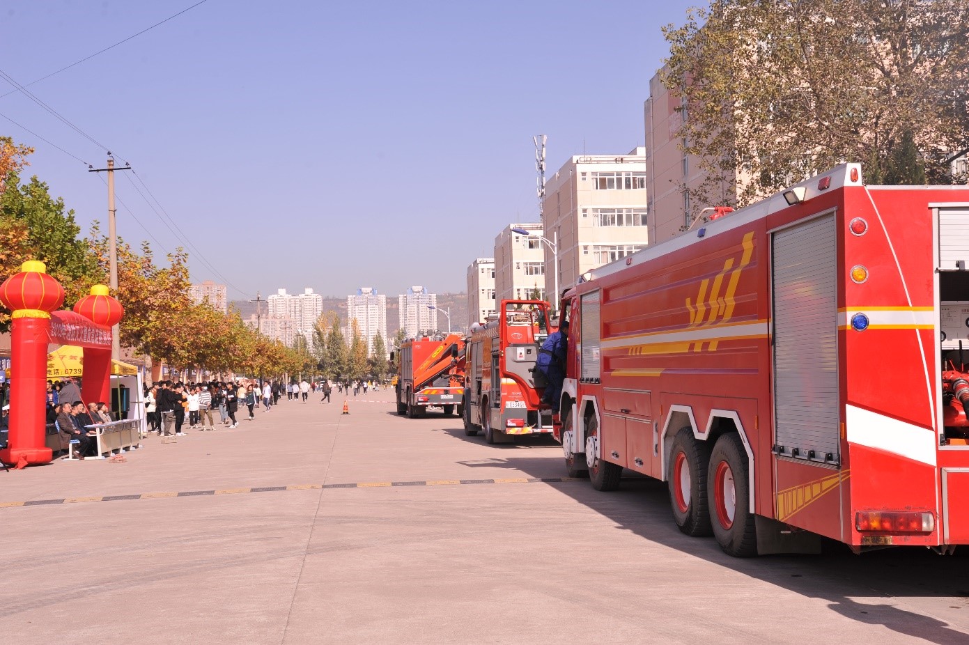 11月14日上午,我校在高新校区举行了2019年消防灭火暨应急疏散演练。宝鸡市消防救援支队特勤中队出动20余人和登高平台消防车、高喷消防车、抢险救援车等大型设备配合此次演练。校党委副书记栾宏参加了演练活动。