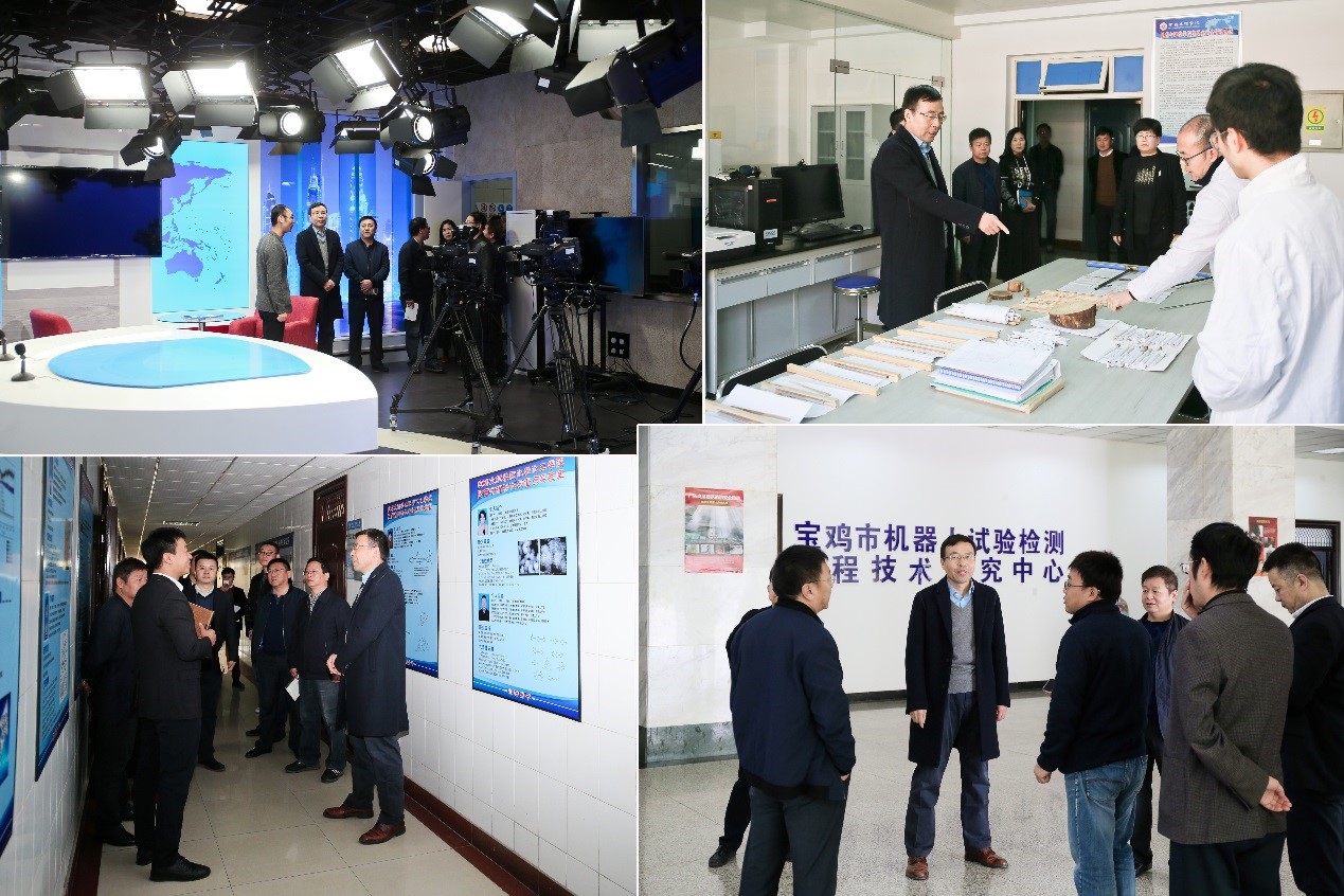 郭霄鹏、栾宏先后到周秦伦理文化与现代道德价值研究中心、校史展览馆、宝鸡民间美术展览馆、文传院现代媒体实验教学中心、外国语学院虚拟情境与“一带一路”外语服务同声传译实践中心、陕西省灾害监测与机理模拟重点实验室、陕西省植物化学重点实验室、陕西省机器人关键零部件先进制造及评估省市共建重点实验室进行检查,认真听取了各考察点建设单位负责人工作汇报,对各考察点存在的困难和问题,进行了现场协调解决。郭霄鹏、栾宏就进一步做好考察点建设工作从整体布局、现场讲解、环境卫生、工作人员精神面貌等提出了具体的指导意见。
