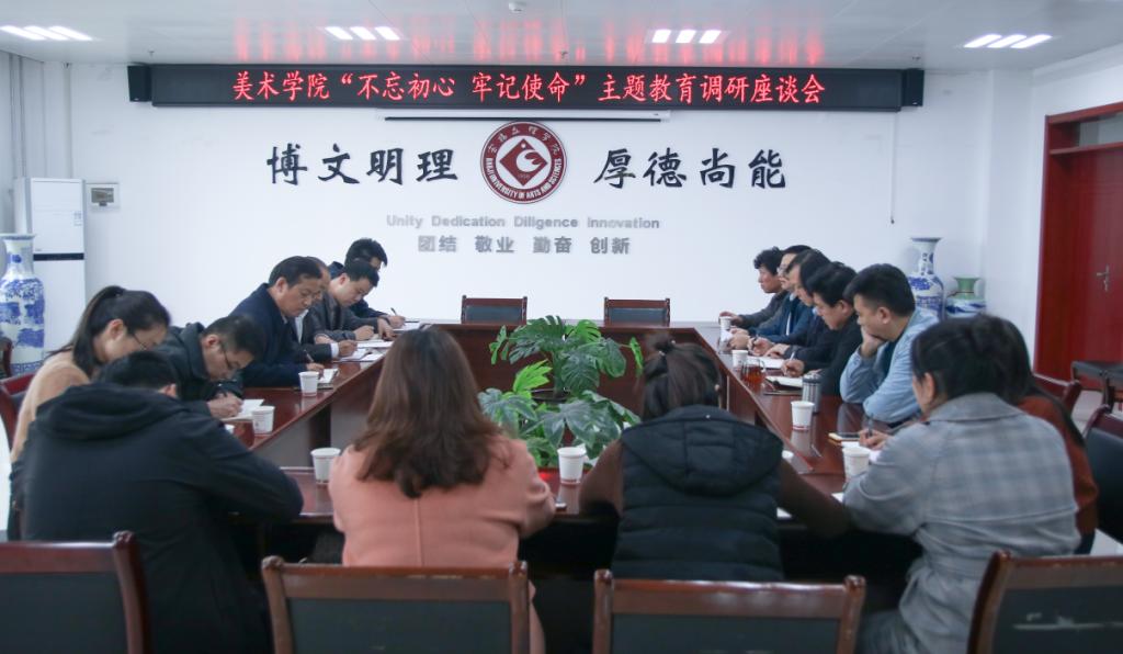 座谈会上,美术学院党政领导对“不忘初心、牢记使命”主题教育工作的开展情况及下一步的工作计划进行了详细汇报。学院党政领导、教师代表、学生代表围绕“进一步巩固教学中心地位,强化制度保障”的主题畅所欲言,各抒己见,提出了一些有针对性的意见和建议。