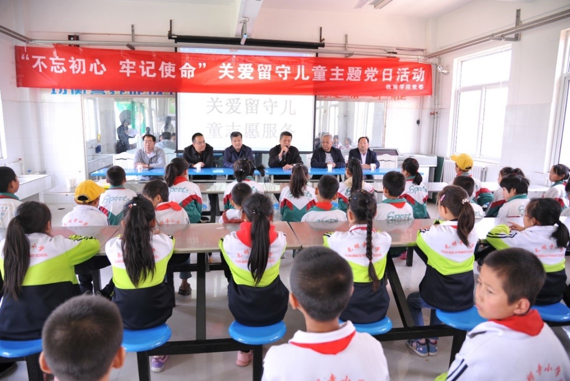 调研期间,校领导专程前往千阳县元明寺小学现地观摩了教育学院师生在该校开展的“不忘初心、牢记使命”党员教育实践暨“关爱留守儿童志愿服务”系列活动。段恒春围绕关爱帮扶活动一定要紧密结合学校实际、重点关注留守儿童、注重帮扶方式和效果提出了明确要求。他要求,教育学院要在精准调研的基础上,通过实在管用的帮扶活动,让贫困家庭的孩子和留守儿童切实感受到社会、学校的关爱和温暖,树立学习自信,确保每一名学龄儿童都能够接受良好的教育。活动现场,教育学院师生党员为元明寺小学师生带去了合唱、手语操、舞蹈等丰富多彩的文艺节目,社科处副处长马多秀博士为该校教师作了题为《教师的幸福和幸福的教师》的报告,教育学院教工第二支部杨亚锋博士为该校留守儿童开展了心理辅导讲座并进行了心理测评。