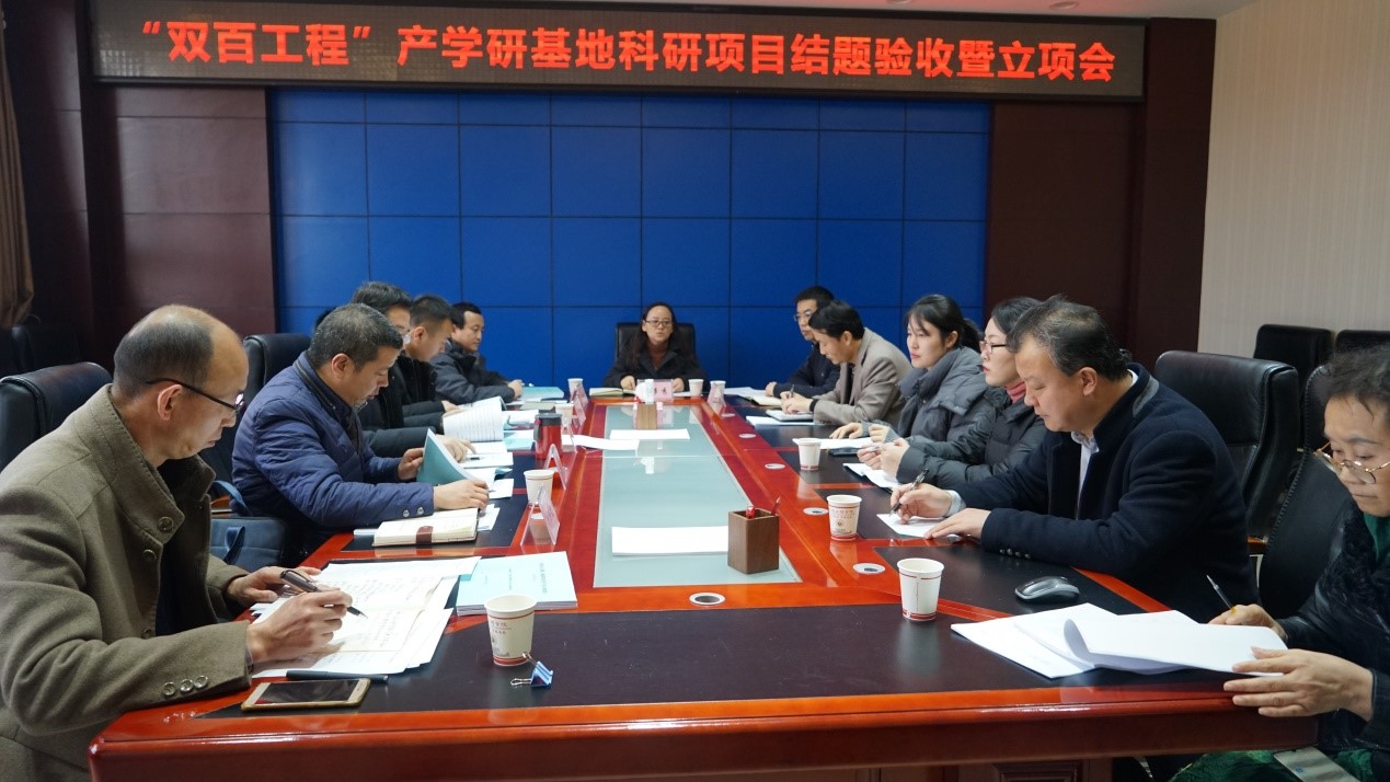 12月18日下午,社科处会同校扶贫办在高新校区图书馆806会议室召开“双百工程”产学研基地社科类科研项目结题验收暨立项会,会议由社科处副处长马多秀主持。
