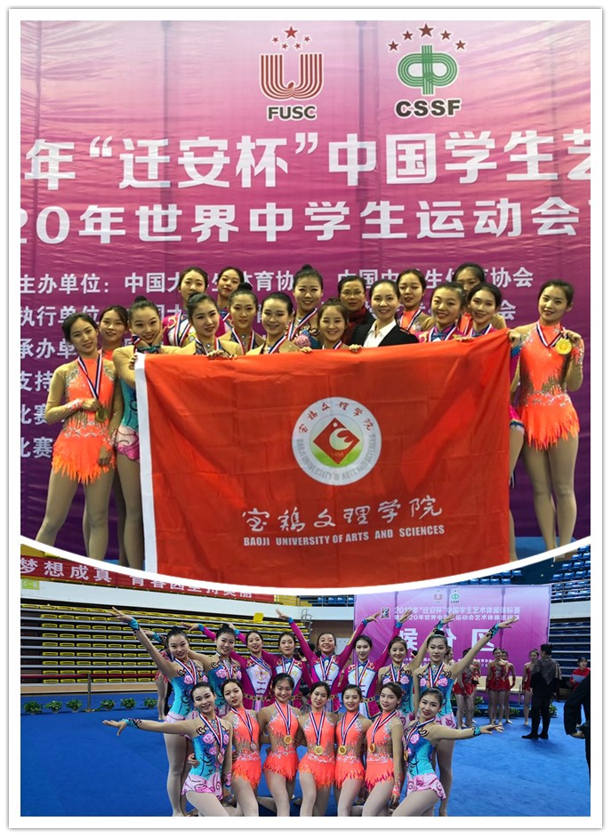 11月27日至30日,2019年中国学生艺术体操锦标赛在唐山九江体育中心举行,我校艺术体操代表队在参加的四个单项比赛中,一举摘得三项桂冠、一项第二的优异成绩,本次比赛又一次使我校被全国参赛院校所熟识,进一步提升了我校在兄弟院校中的知名度。