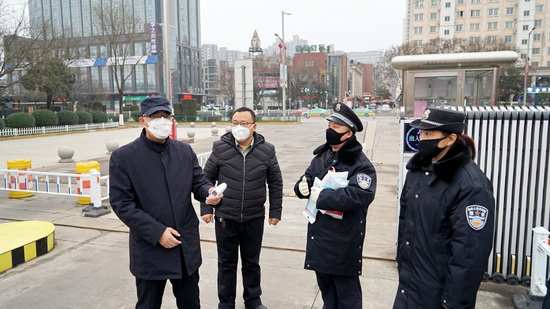 1月26—27日,校党委书记、学校防控工作领导小组组长赵健,校党委副书记、学校防控工作领导小组副组长栾宏,副校长、学校防控工作领导小组常务副组长李景宜一行来到高新校区、石鼓校区和家属区检查指导新型冠状病毒感染的肺炎疫情防控工作。